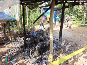 ปฏิบัติหน้าที่สายตรวจรถยนต์(20)ร่วม พะงัน 1,พะงัน 30 พร้อม ว.30 ว.4 เหตุรับแจ้งจาก ศูนย์วิทยุ สภ.เกาะพะงัน มีเหตุลักลอบเผาจักรยานยนต์จำนวน 2 คัน เหตุเกิดที่ บ้านเลขที่ 114/9 ม.1 ต.บ้านใต้ อ.เกาะพะงัน จ.สุราษฎร์ธานี ว.24 นี้ได้กั้นที่เกิดเหตุไว้เรียบร้อยแล้ว