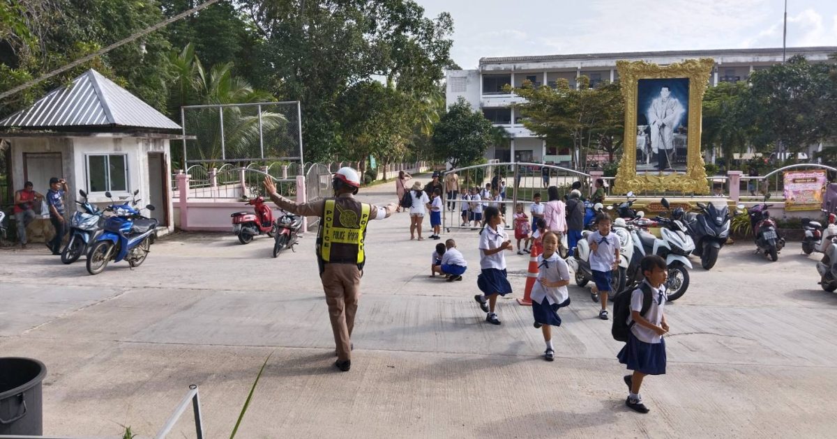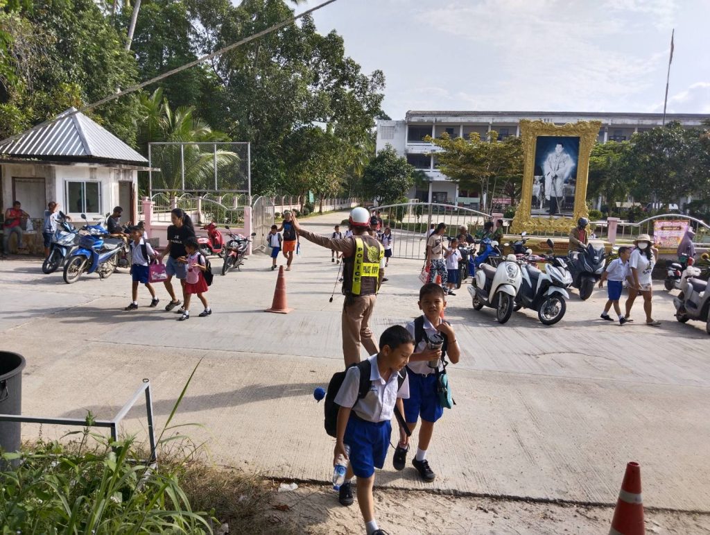 ว.4 อำนวยความสะดวกด้านการจราจรหน้าโรงเรียนเทศบาลตำบลเกาะพะงัน ม.2 ต.เกาะพะงัน อ.เกาะพะงัน จ.สุราษฎร์ธานี
