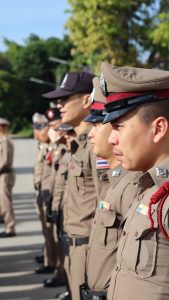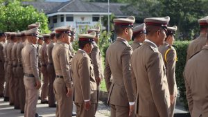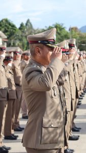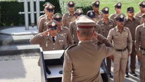 รียกแถวข้าราชการตำรวจในสังกัดเคารพธงชาติกล่าวบทปลงใจ